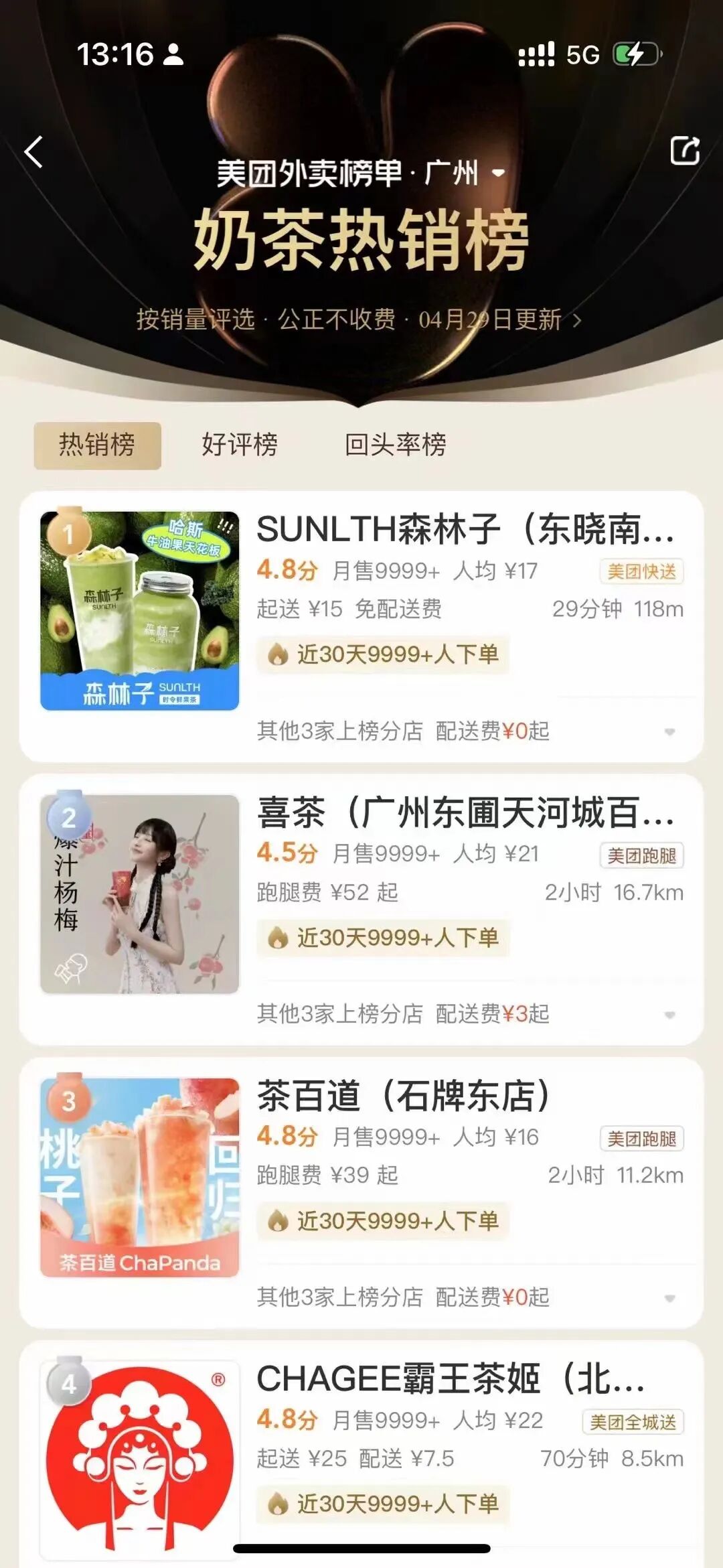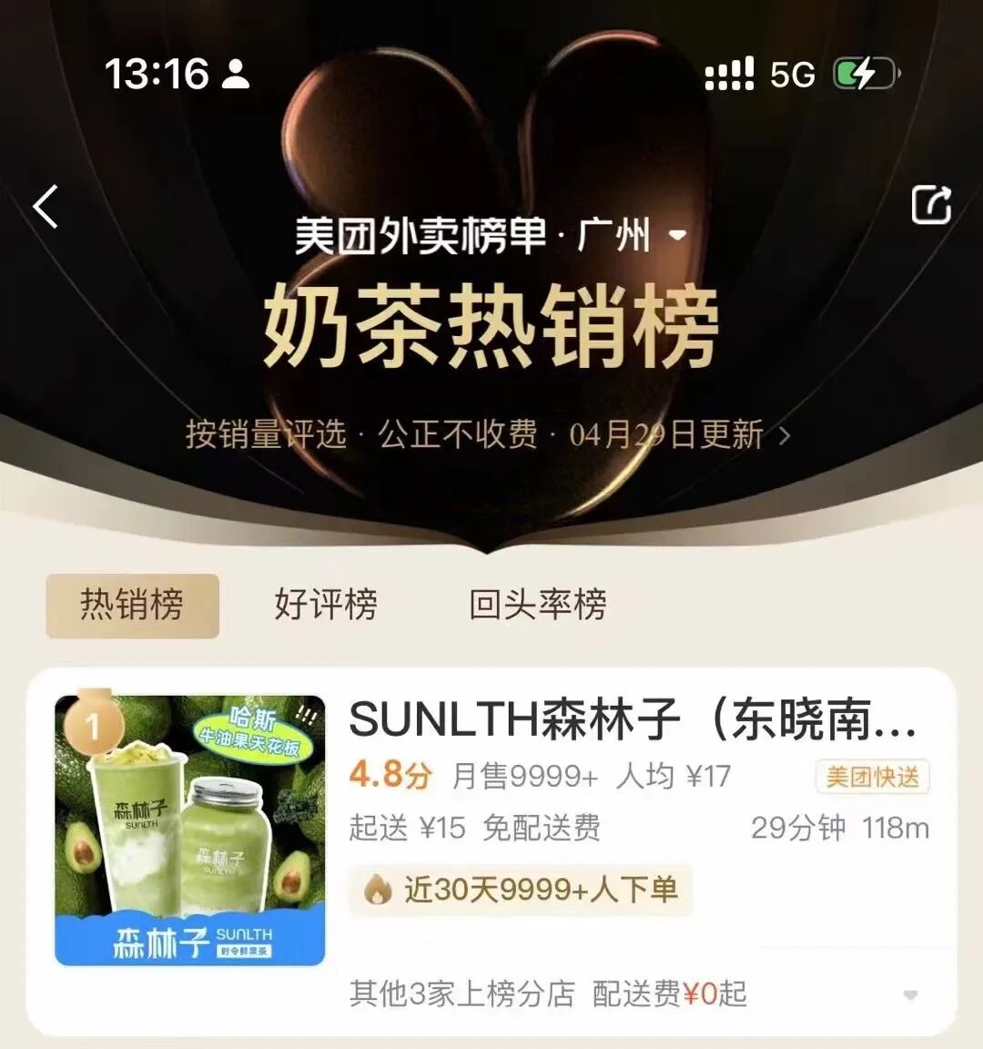 爆品频出,时令鲜果产品上新速度快,让森林子在竞争激烈的茶饮赛道中,打出了特色,赢得了消费者的青睐。广州东晓南单店日营业额能做到5万+,力压众多品牌,成为茶饮行业第一店。