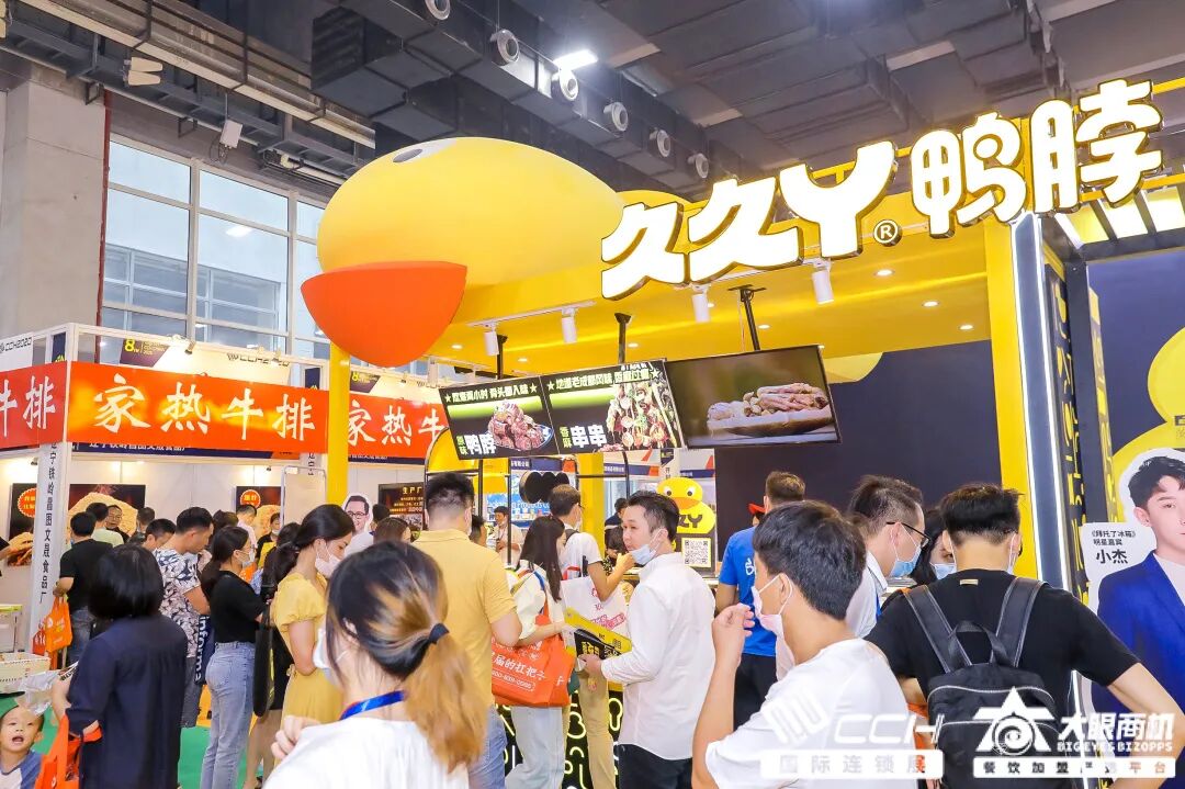 历年来,小吃品类都是CCH餐饮连锁展的重要展示部分,在现场的表现也都十分亮眼。阿甘锅盔、粮全其美、久久丫鸭脖、小蹄大作等等小吃品牌,吸引了一波又一波投资客驻足考察。