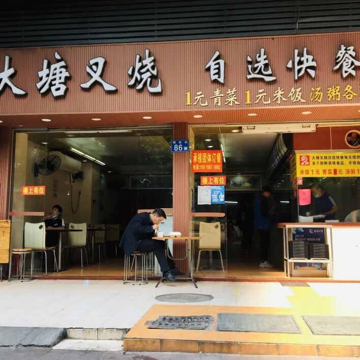 疫情这几年,米饭快餐店存活率相对较高的事实,也印证了这一点。在广州天河区东圃商圈的一条临街铺面里,一家大单品型米饭快餐品牌,做猪脚饭。和另一家做自选快餐的综合型米饭快餐门店,生意一直很不错,满座排队是常见场景。而旁边的一些店,招牌则换了一轮又一轮。