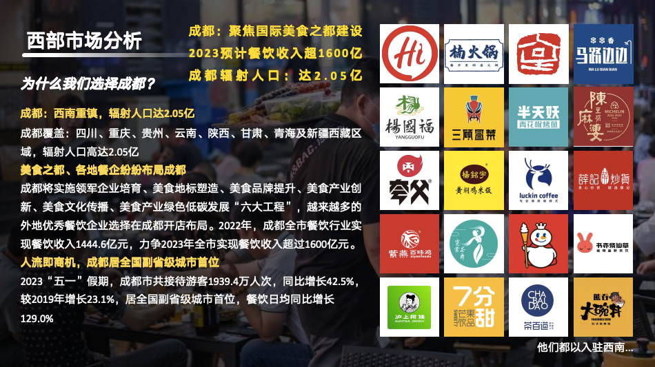 CFA:专注餐饮招商,因为专注、所以专业,应广大品牌之需求,CFA布局西部市场,助力品牌千城万店。CFA:加盟商的经纪人,以品质招商为核心,将组织四川、重庆、贵州、云南、陕西、甘肃、青海及新疆西藏区域的高质量投资加盟商群体,对接全国优秀的餐饮连锁品牌。