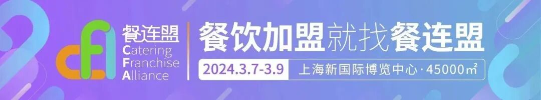 [温馨提示] 文章来源于CFA上海餐饮加盟展公众号,转载注明原文出处,此文观点与查生意无关,理性阅读,版权属于原作者若无意侵犯媒体或个人知识产权,请联系我们,本站将在第一时间删掉 ,查生意仅提供信息存储空间服务。