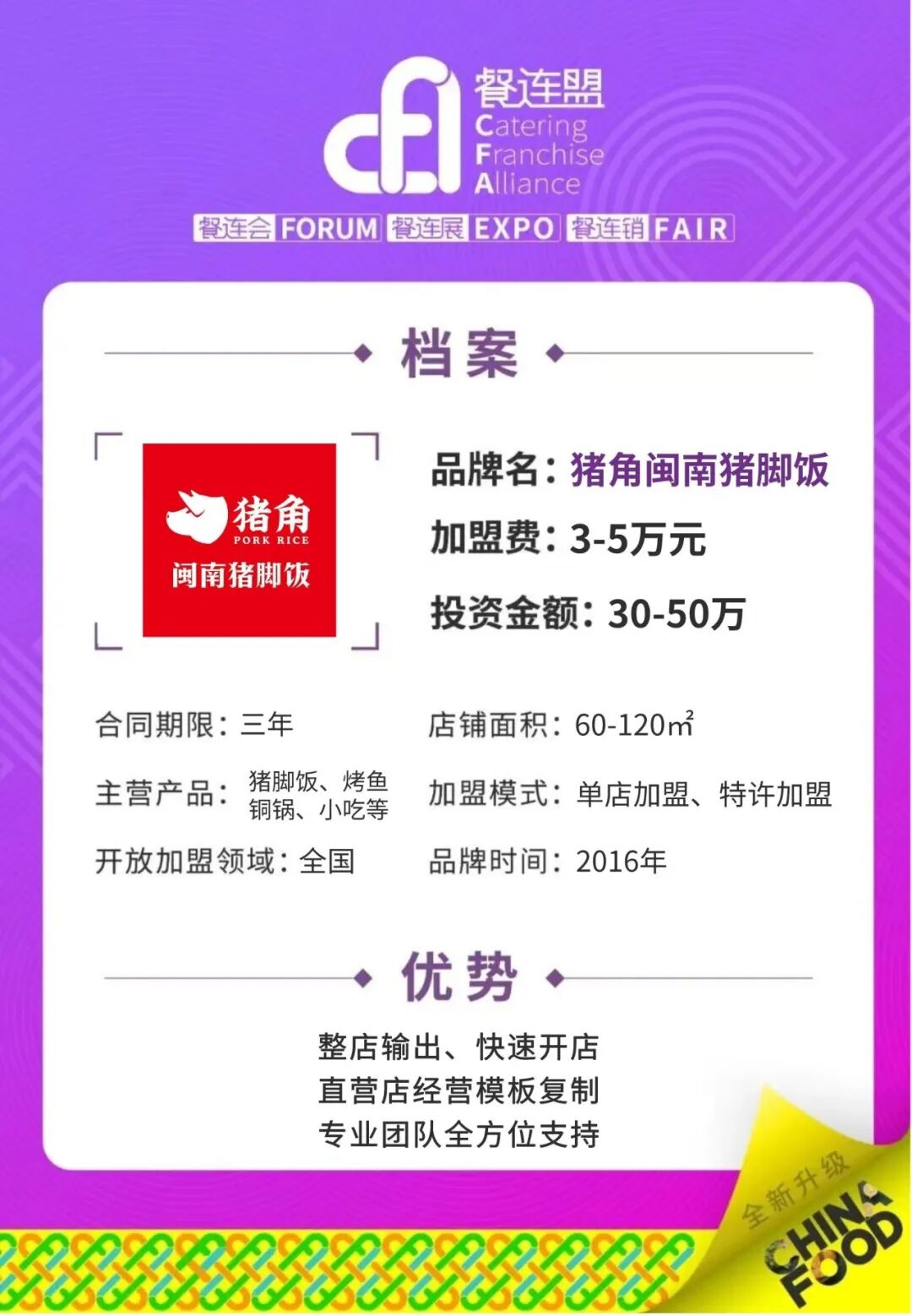 「找好项目,就来CFA」猪角 | 正宗闽南猪脚饭,打造全国中式快餐头部品牌