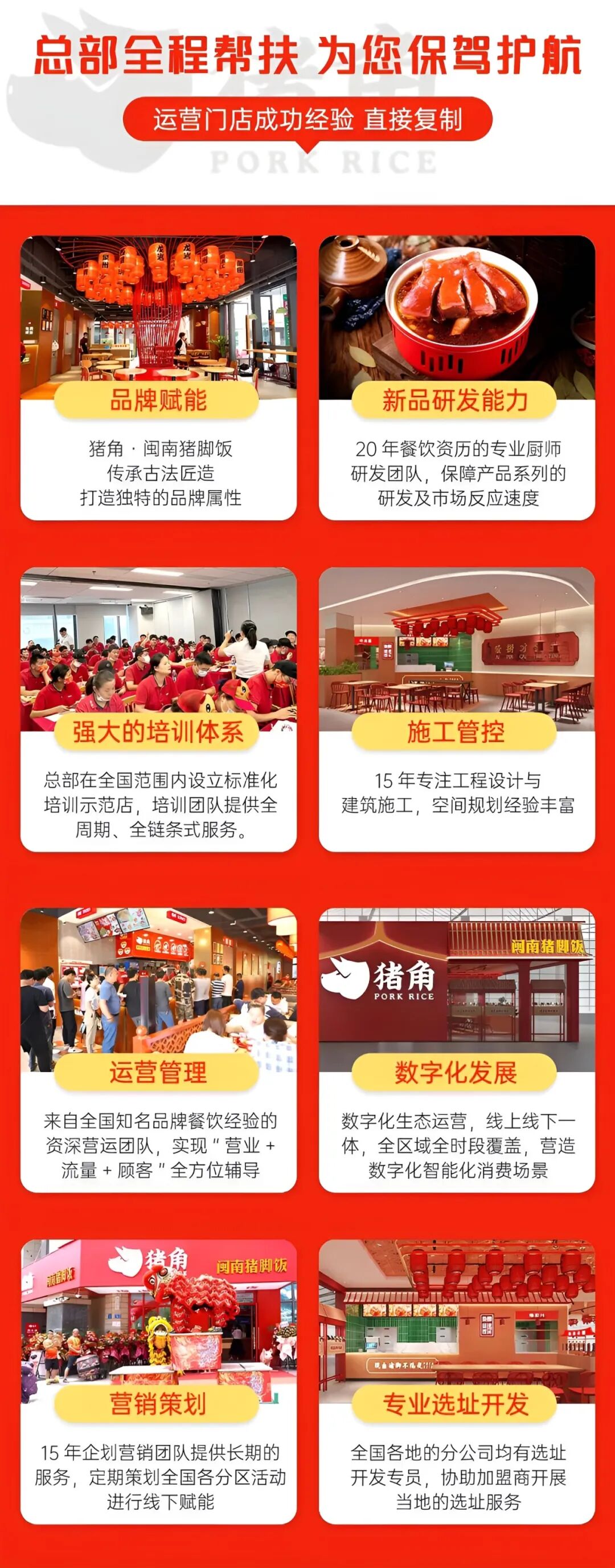 品牌简介猪角|闽南猪脚饭以“现卤猪脚不隔夜”的理念,凝聚了我们对食物烹饪的极致追求与真挚信念,遵循古法工艺,寻味闽南味道,用心做好