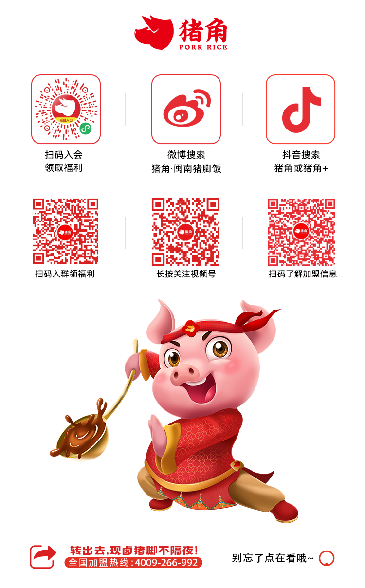 猪角|闽南猪脚饭以“现卤猪脚不隔夜”的理念,凝聚了我们对食物烹饪的极致追求与真挚信念,遵循古法工艺,寻味闽南味道,用心做好每一碗饭。用全渠道运营模式,点燃万亿市场,赢得无数赞誉和信任。全国门店数量超过500家,广泛分布于全国16个省,50多个城市。2021年猪角成功完成1.5亿人民币的A轮融资。