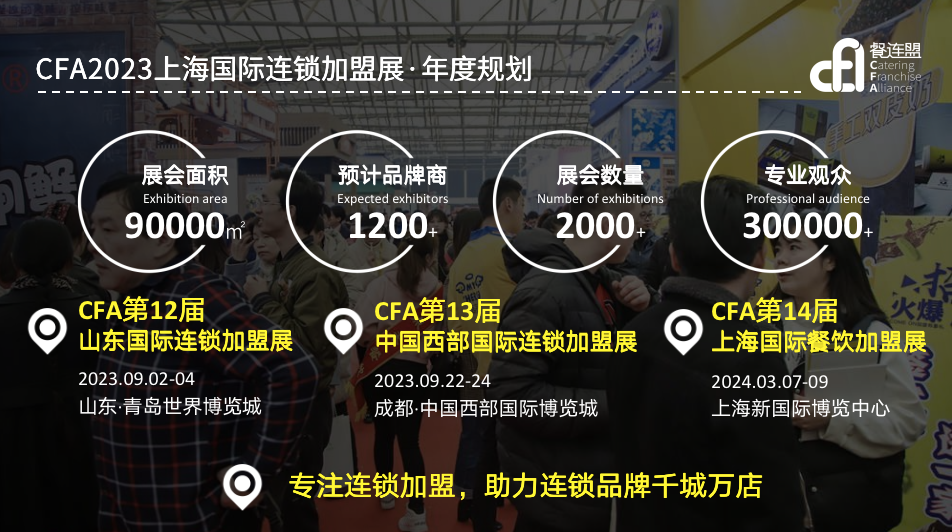 [温馨提示] 文章来源于CFA上海餐饮加盟展公众号,转载注明原文出处,此文观点与查生意无关,理性阅读,版权属于原作者若无意侵犯媒体或个人知识产权,请联系我们,本站将在第一时间删掉 ,查生意仅提供信息存储空间服务。