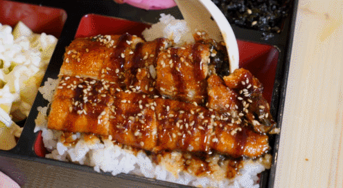 一勺下去鳗鱼的口感超级美味,再加特制的鳗鱼汁倒在饭里,里面的米饭都是粒粒分明,而被酱汁盖满的鳗鱼,口感也是丰腴十足外焦内嫩的口感,配上软糯的米粒,完全不腻人~