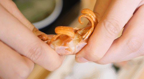 熊木一禾保持传统日本料理店才用到的手握饭,而非国内很多寿司店使用的机器或模具压制饭团的做法,目的在于保持寿司饭团松紧适度,口感更好。