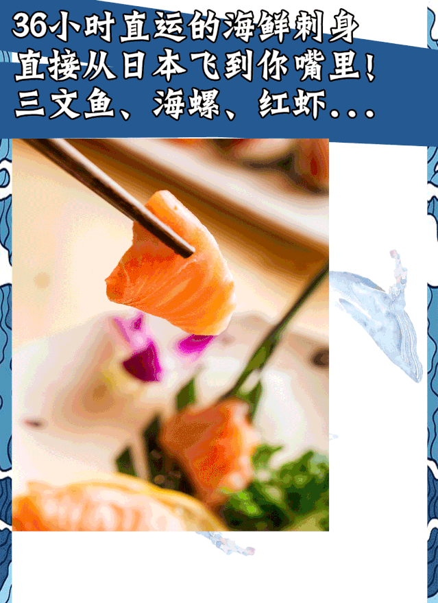 漂亮的造型、新鲜的原料、柔嫩鲜美的口感、带有刺激性的调味料,能让你尝到舌尖上不同的质感与口感。吃三文鱼一定要选厚切,新鲜的三文鱼,还散发着鲜亮晶莹的光泽,肉质细嫩,纹理清晰可见!