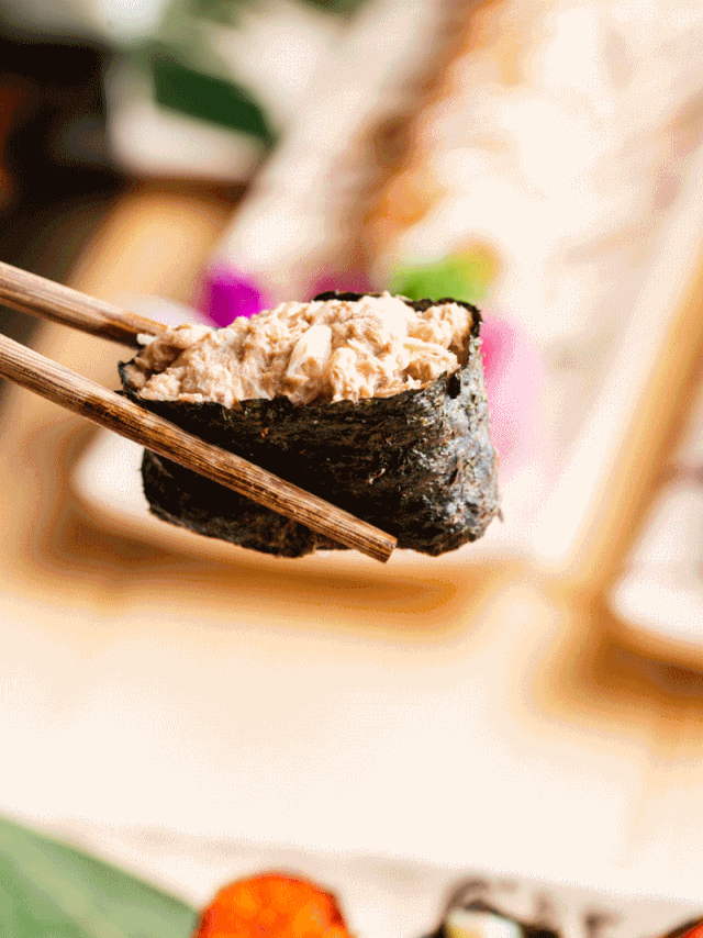 听名字还以为是吐司夹着的金枪鱼,谁想到这盘金枪鱼三明治竟也是饭团做的,白白软糯的饭团夹着肉松等各种配料,外表撒满了红蟹子,黄澄澄的十分诱人。