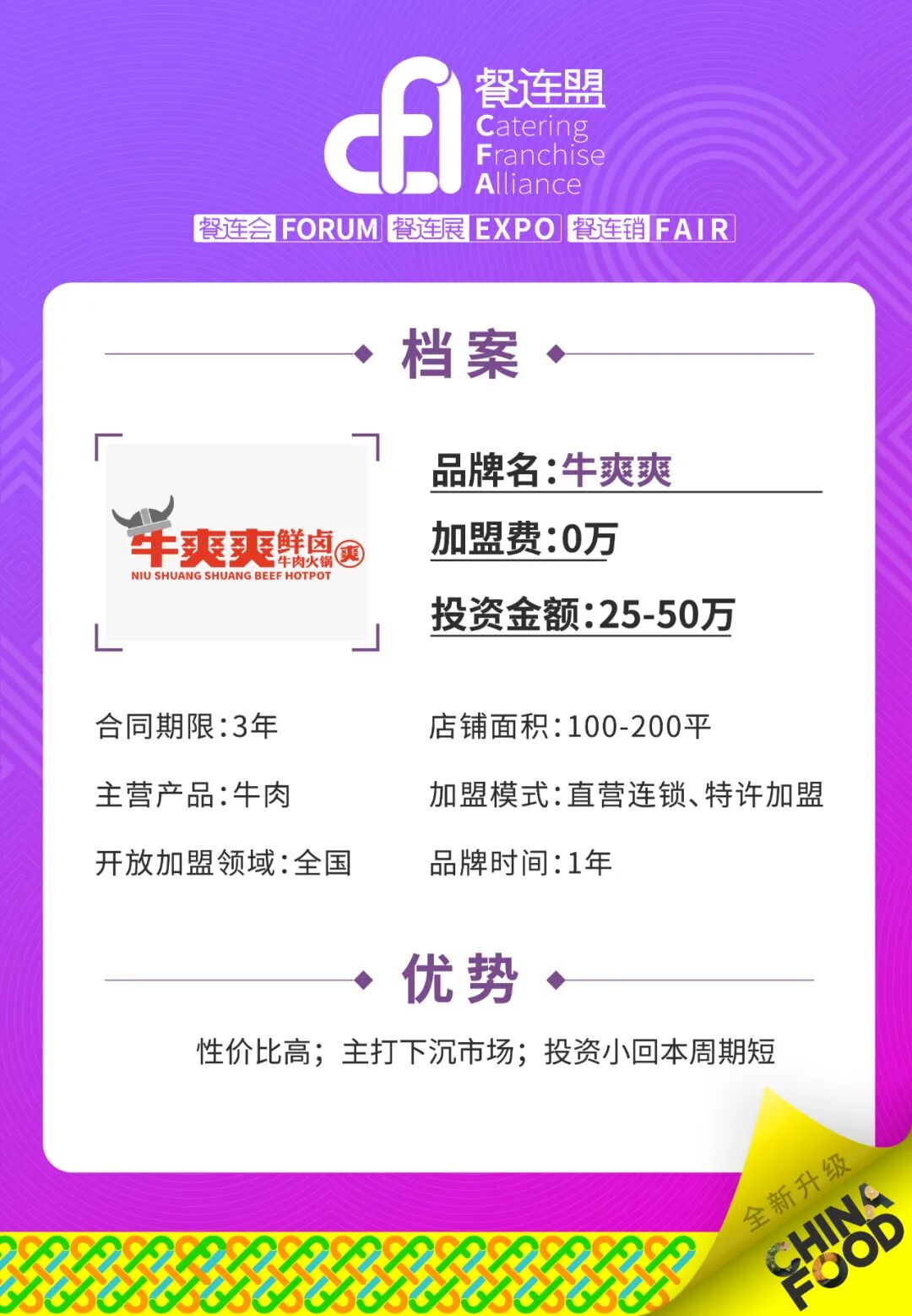 加盟好品牌 轻松开好店 ||「牛爽爽·鲜卤牛肉火锅」邀您参加CFA上海国际餐饮加盟展