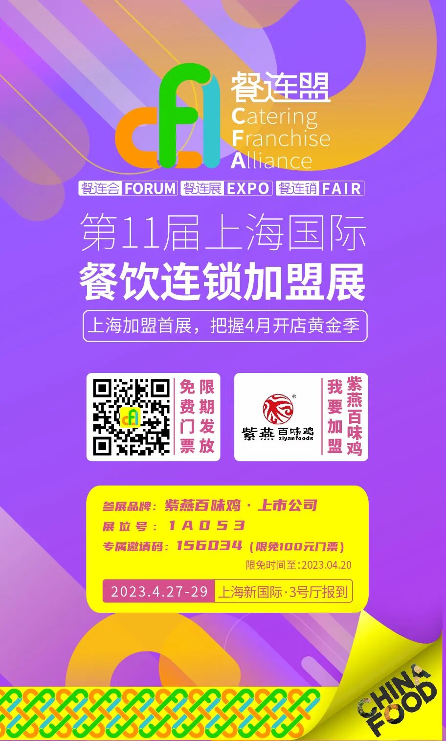 加盟好品牌 轻松开好店 ||「紫燕百味鸡」邀您参加CFA上海国际餐饮加盟展