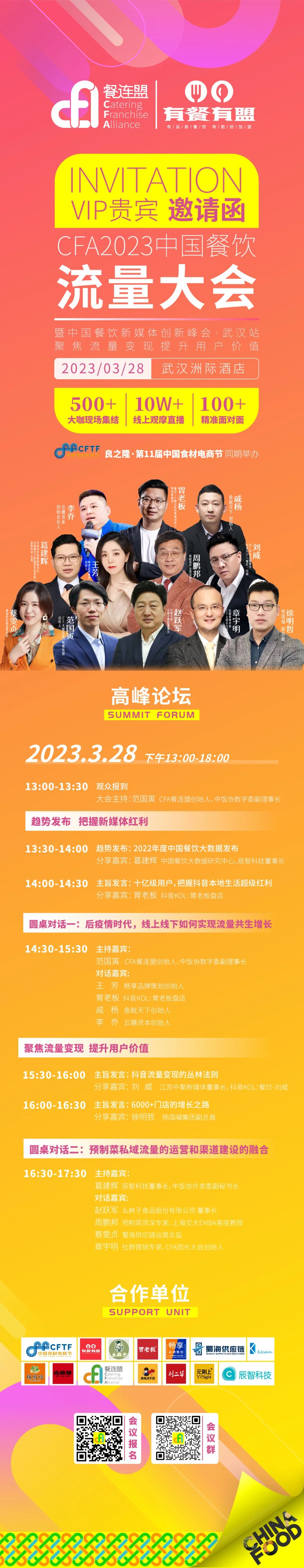 CFA餐连盟CFA中国餐饮流量大会·武汉时间:2023年3月28日 13:00地点:武汉洲际酒店主题:聚焦流量变现、提升用户价值