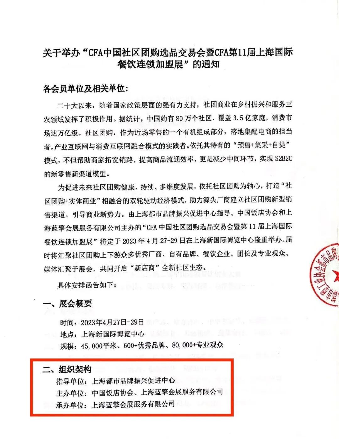 CFA餐饮加盟展(原名:CHINA FOOD 加盟展)自2014立项以来,一如既往始终专注餐饮连锁,迄今为止,依然是国内为数不多的细分加盟展龙头,并连续多年实现上海加盟类展会规模第一。在深耕餐饮赛道上,CFA(原名CHINA FOOD)相继获得中国烹饪协会、中国饭店协会的认可和支持。近日,CFA还获得上海都市品牌振兴促进中心的认可和支持,出任大会指导单位。专注品质招商、助力品牌加盟。