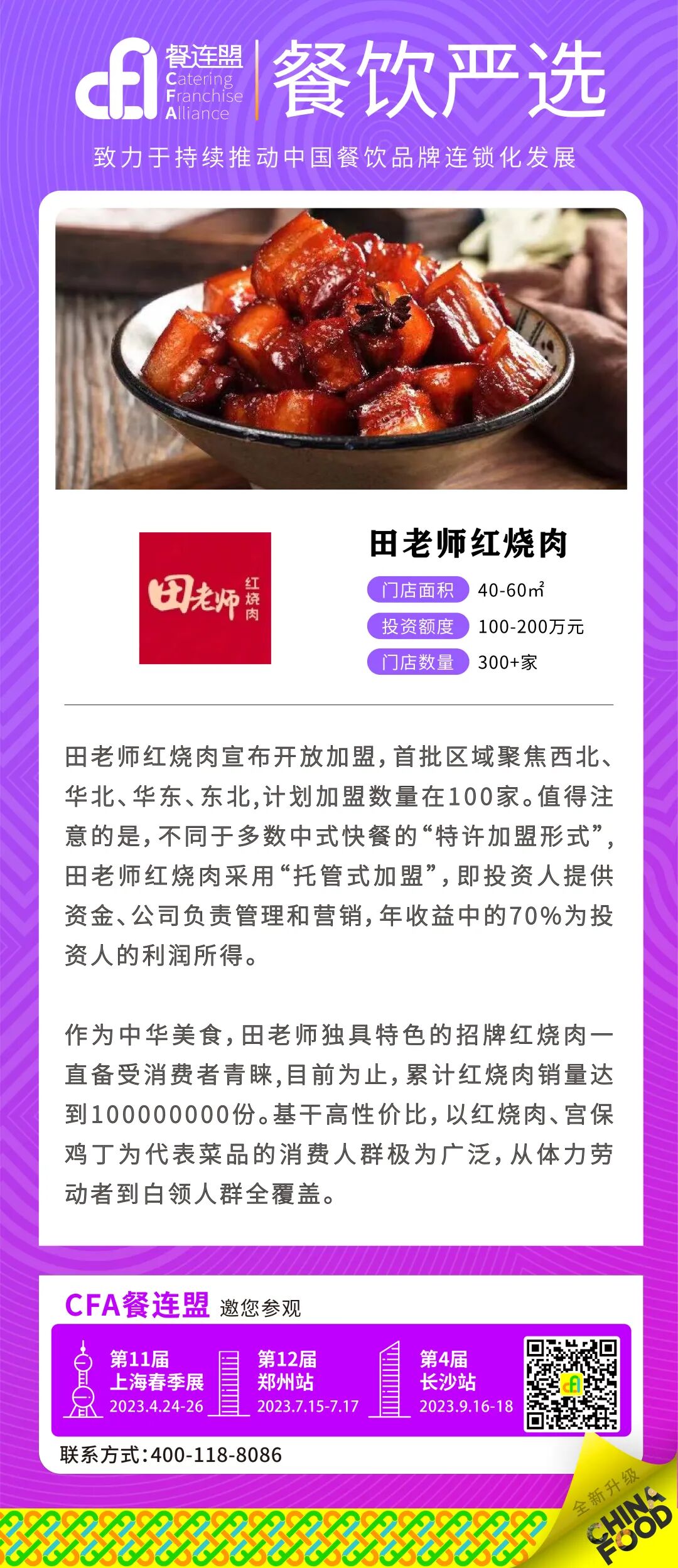 【严选品牌】田老师红烧肉,宣布开放加盟,招牌红烧肉卖出1亿份,目前门店已超300家!