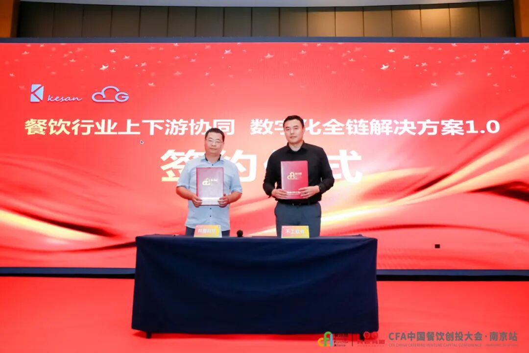 期间,科膳科技创始人唐辰先生、不工集团联合创始人周峰博士达成战略合作,围绕“餐饮行业上下游协同、数字化全链解决方案1.0”,举办了隆重的签约仪式。