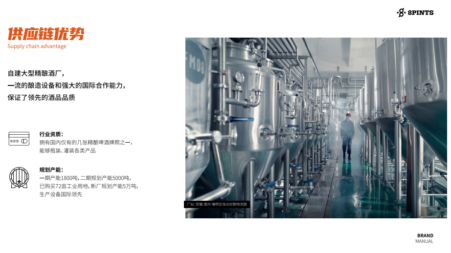 品牌简介8PINTS八品脱,背靠自有的国产一线精酿厂牌梦想酿造,坐拥2000吨年产能,收购了美国知名厂牌工具箱、引进了鹅岛酿酒师,