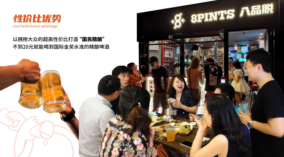 8PINTS八品脱以场景化思维和社交裂变方式链接新一代年轻消费族群,搭建精酿文化与“破界”精神交融的美食/社交/文化空间。