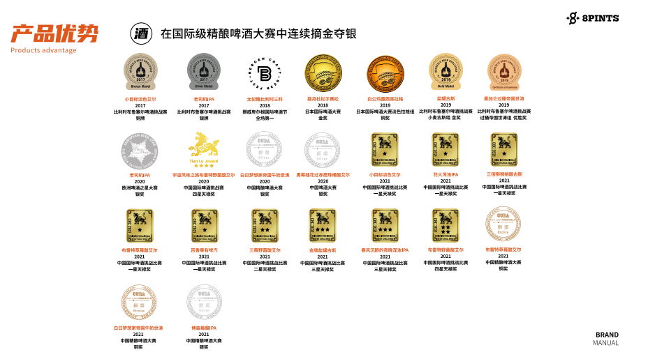 8PINTS八品脱,背靠自有的国产一线精酿厂牌梦想酿造,坐拥2000吨年产能,收购了美国知名厂牌工具箱、引进了鹅岛酿酒师,开发了两百多款精酿啤酒,荣获了23项国内外大奖,曾在中国最权威的精酿比赛(中国国际精酿啤酒挑战赛)荣获全场第二。