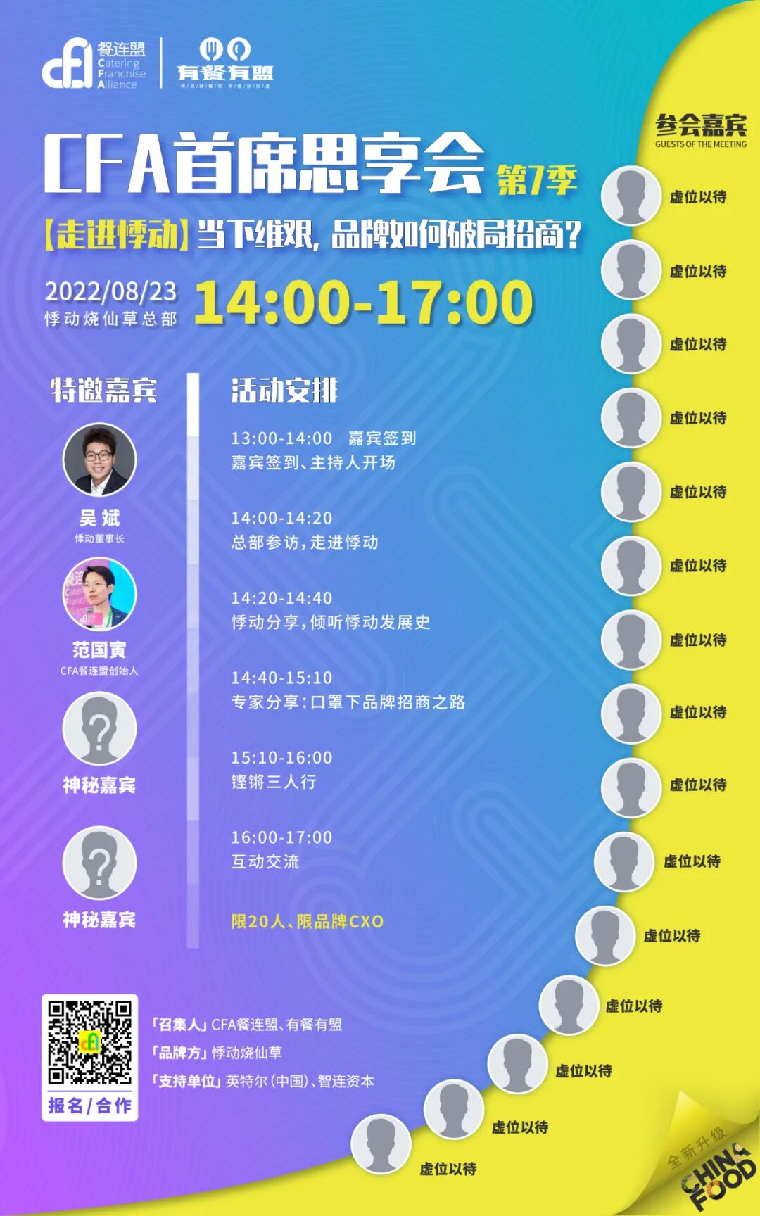 【CFA首席思享会第7季】8月23日,走进悸动烧仙草,聚焦后疫情时代,品牌如何破局招商!