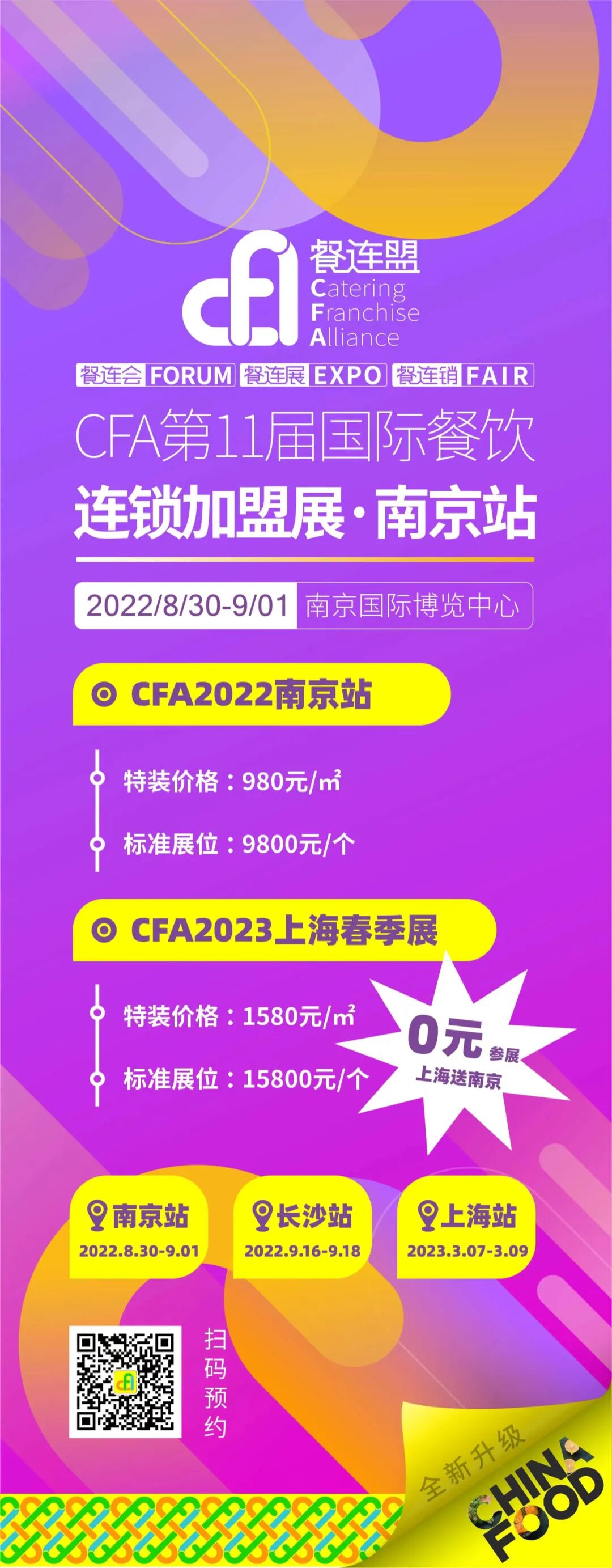CFA南京站|吹响“2022餐饮招商”振兴号角!8.30-9.1 ,相约南京