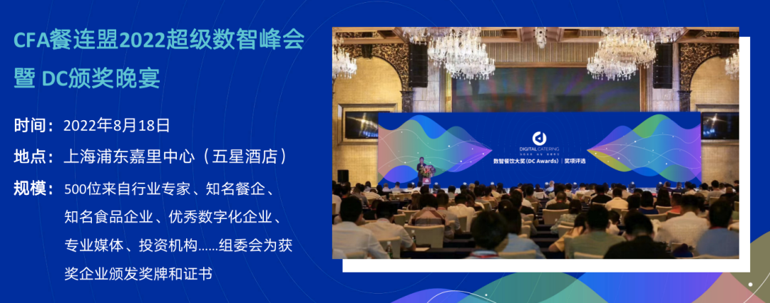 CFA数智峰会 || DC数智餐饮领军企业榜,餐饮数智化前沿大奖,8.18上海
