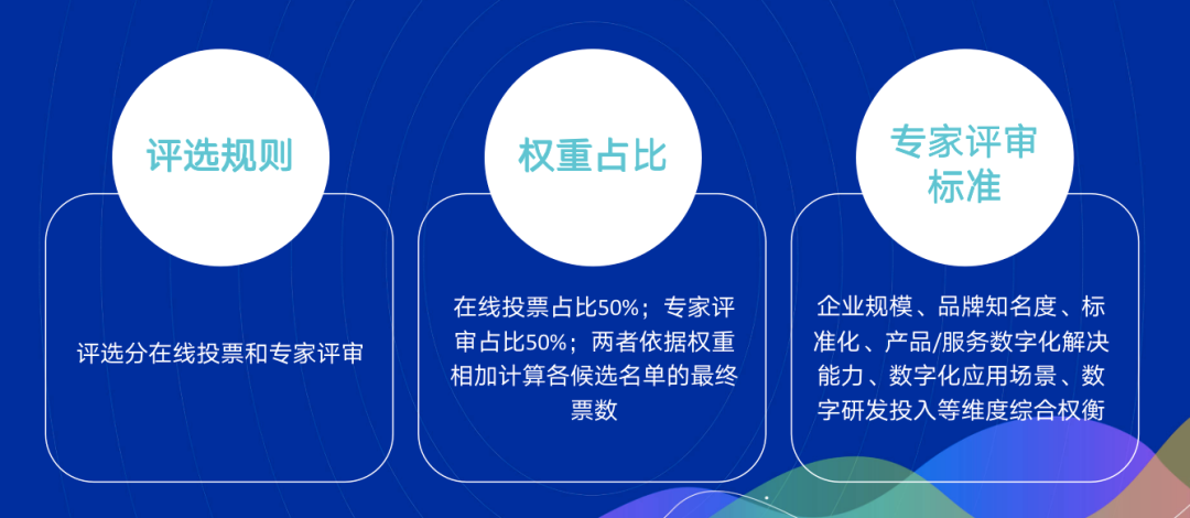 专家评审标准:企业规模/标准化、品牌知名度、产品/服务数字化解决能力、数字化应用场景、数字研发投入五个维度综合权衡