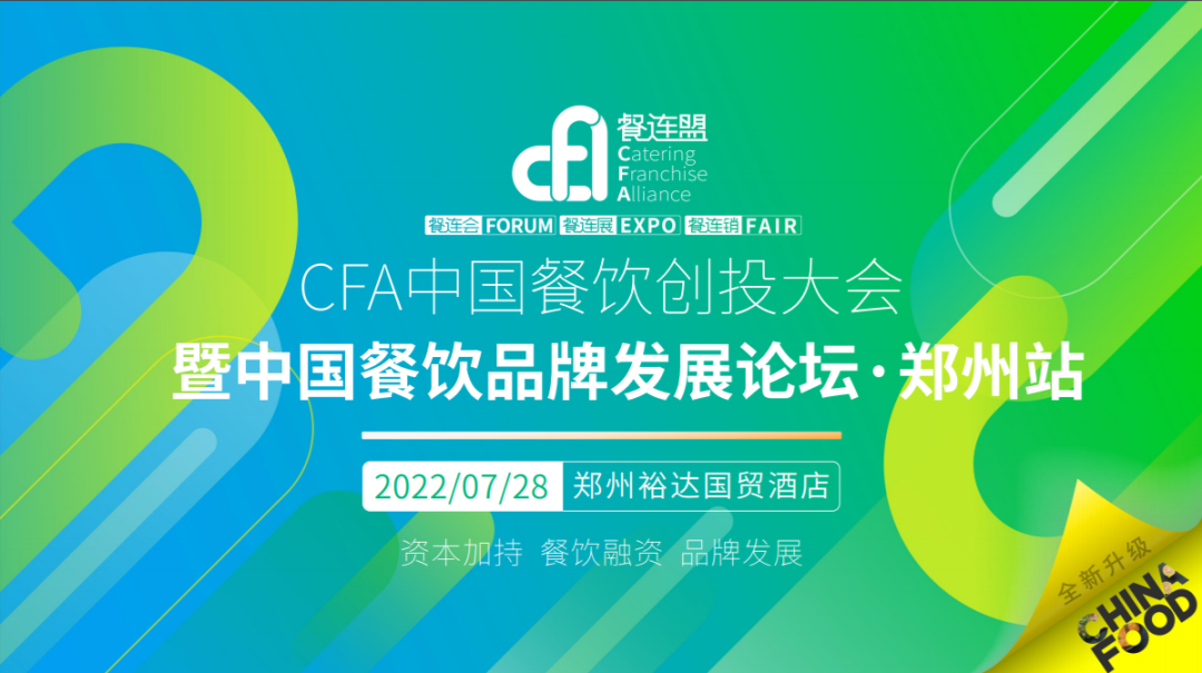 CFA创投大会 |中国餐饮创投大会暨品牌发展论坛·郑州站,7.28震撼来袭!