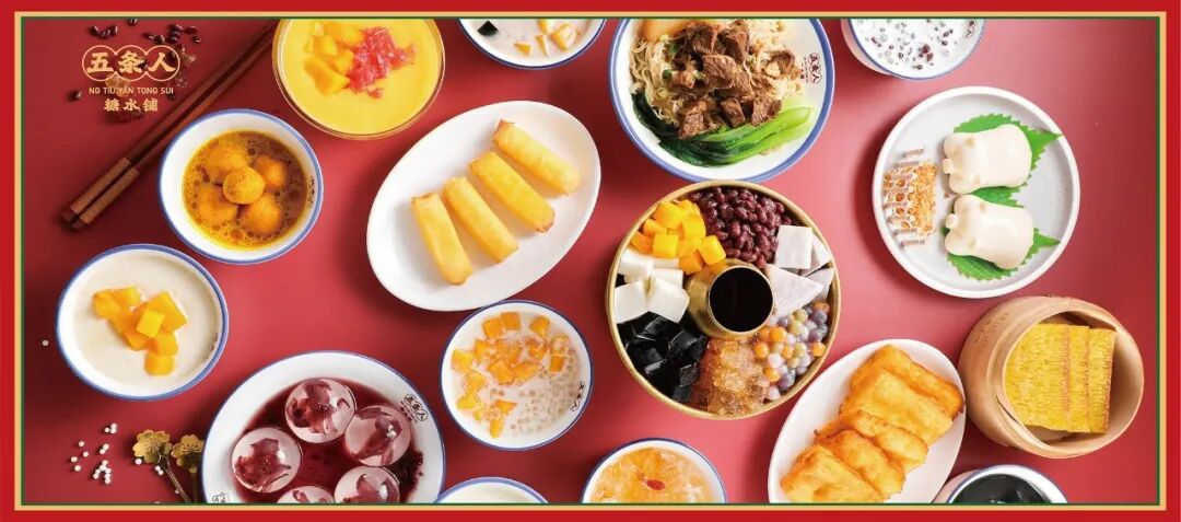 五条人糖水铺创立于厦门,五个创始人寻根糖水发源地。师从顺德百年糖水世家门下,以其地道的老广风味和独特的装潢设计赢得大家的喜爱,成为餐饮界一颗闪耀的新星。