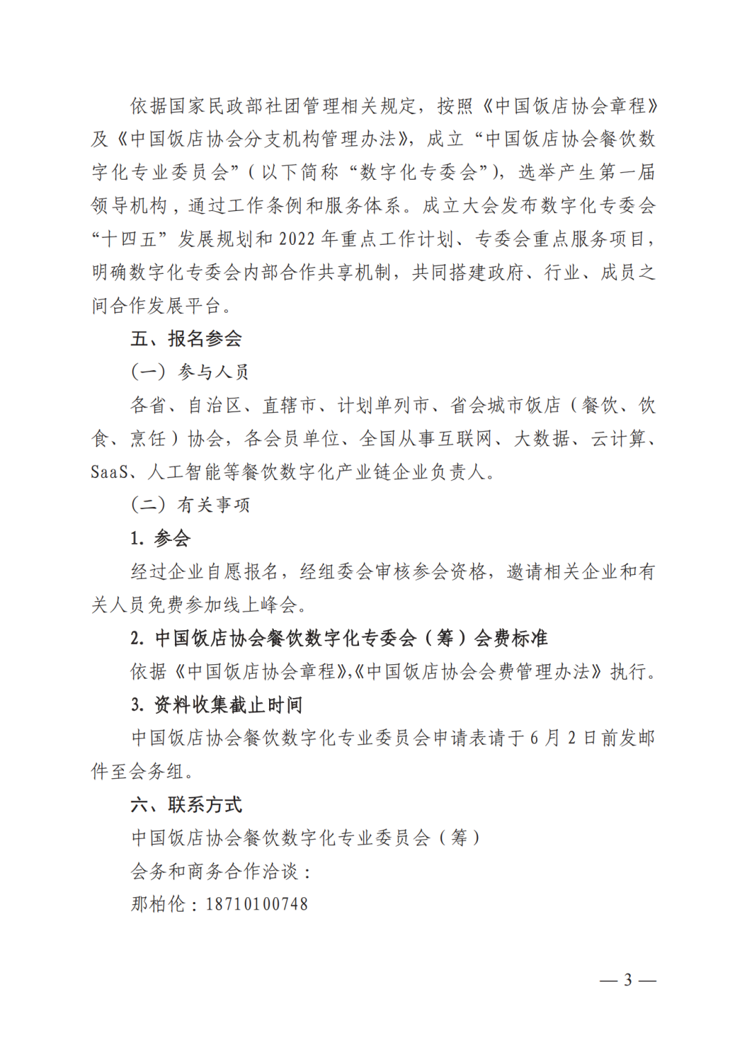 中国饭店协会餐饮数字化专业委员会,6月10日成立大会