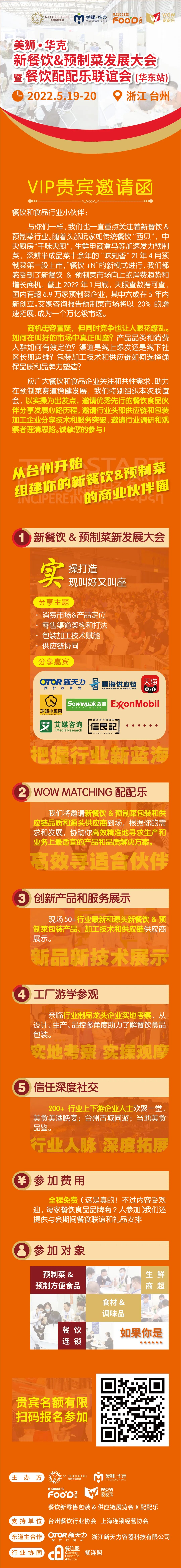 CFA餐连盟X美狮·华克 || 预制菜大咖传道授业解惑,5.19-20,去台州组建你的行业伙伴圈子