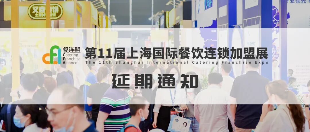 鉴于目前上海及国内多地再次出现新冠疫情,防控形势复杂,为全力配合国家及上海市疫情防控工作,切实保障广大参展商、加盟商以及广大与会业界同仁的身体健康、出行安全和参展效果,经多方沟通协调与慎重研究决定:原定于2022年5月1日-3日在上海新国际博览中心举办的“CFA第11届上海国际餐饮连锁加盟展”及同期举办的“2022中国餐饮大会”将延期举办。为把握最佳招商节点,根据近期疫情平稳形势,具体举办时间再另行通知。