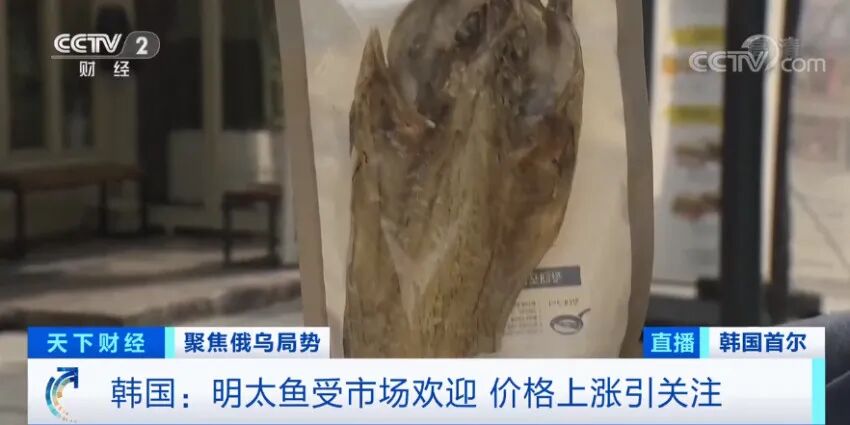记者手里拿的这款袋装干明太鱼,由鲜鱼经风干等工序后制成,是韩国民众非常喜爱的下酒菜。这款产品目前售价7500韩元,约合人民币40元,和以往干明太鱼不到6000韩元的售价相比,不少消费者都表示有点贵。再比如经常用来做汤的冷冻明太鱼,目前的零售和批发价格也分别较一周之前,上涨了一成多和两成左右。