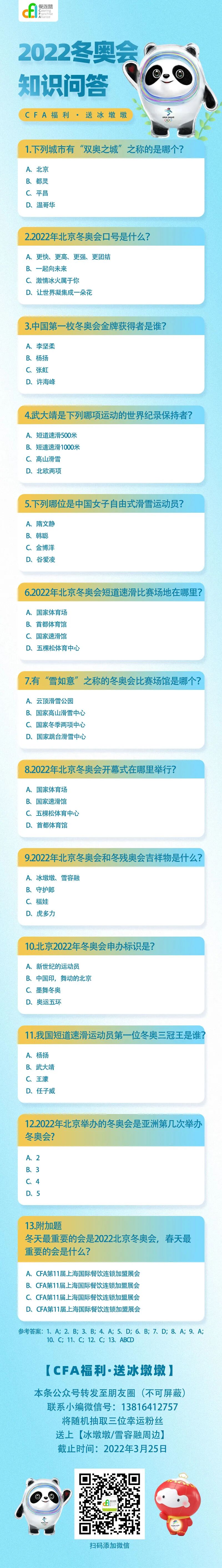 【元宵福利·送冰墩墩】 2022冬奥会知识问答 · CFA餐连盟和您一起为北京冬奥会加油!