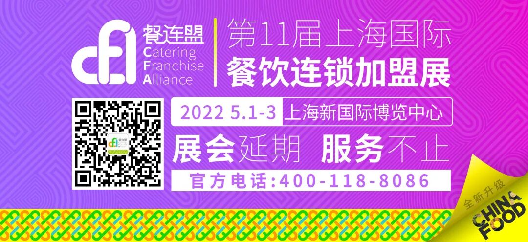 [温馨提示] 文章来源于CFA上海餐饮加盟展公众号,转载注明原文出处,此文观点与查生意无关,理性阅读,版权属于原作者若无意侵犯媒体或个人知识产权,请联系我们,本站将在第一时间删掉 ,查生意仅提供信息存储空间服务。