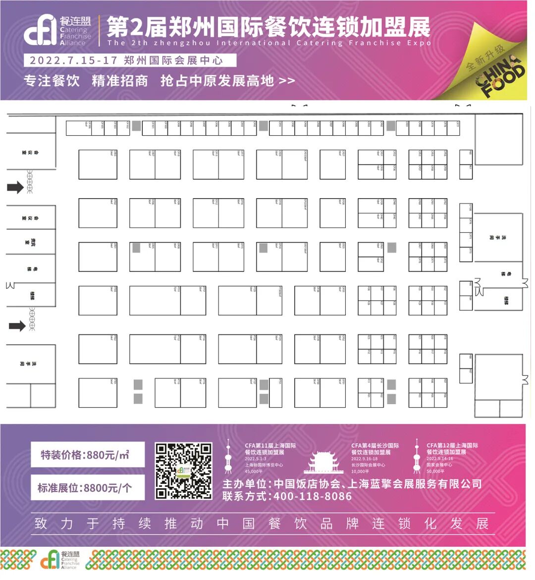 2022·CFA餐连盟CFA郑州第2届郑州国际餐饮连锁加盟展展会时间:2022年7月15-17日展会地点:河南·郑州国际会展中心展