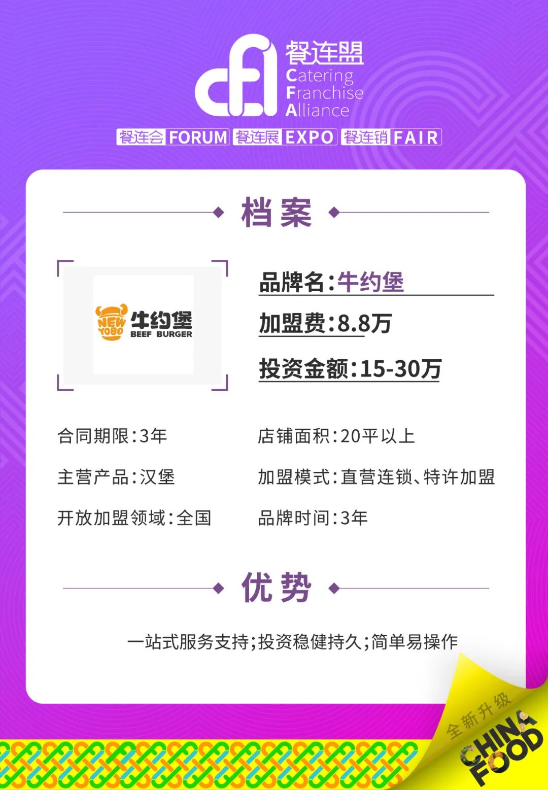 【CFA品牌推荐】牛约堡|做中国牛肉汉堡第一品牌