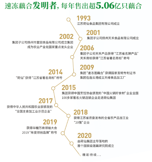 品牌简介莲藕系列产品中国领先品牌江苏荷仙集团,创建于1993年,坐落于“中国荷藕之乡”江苏省宝应县,2002年至今连续被国家八部委