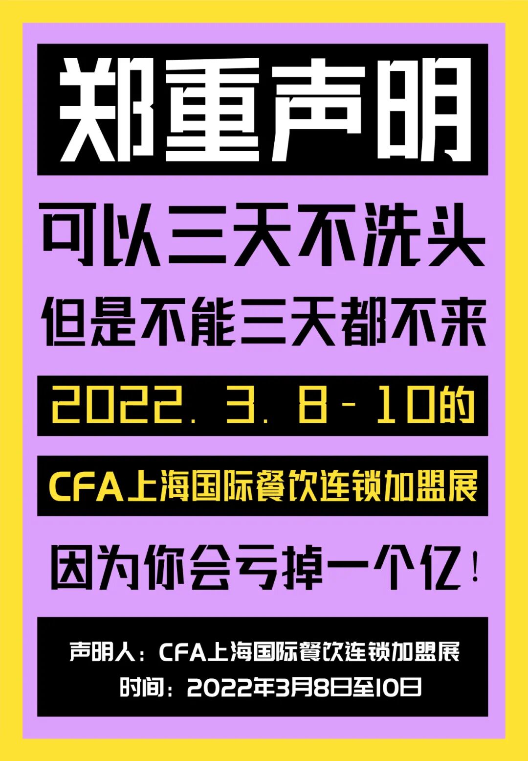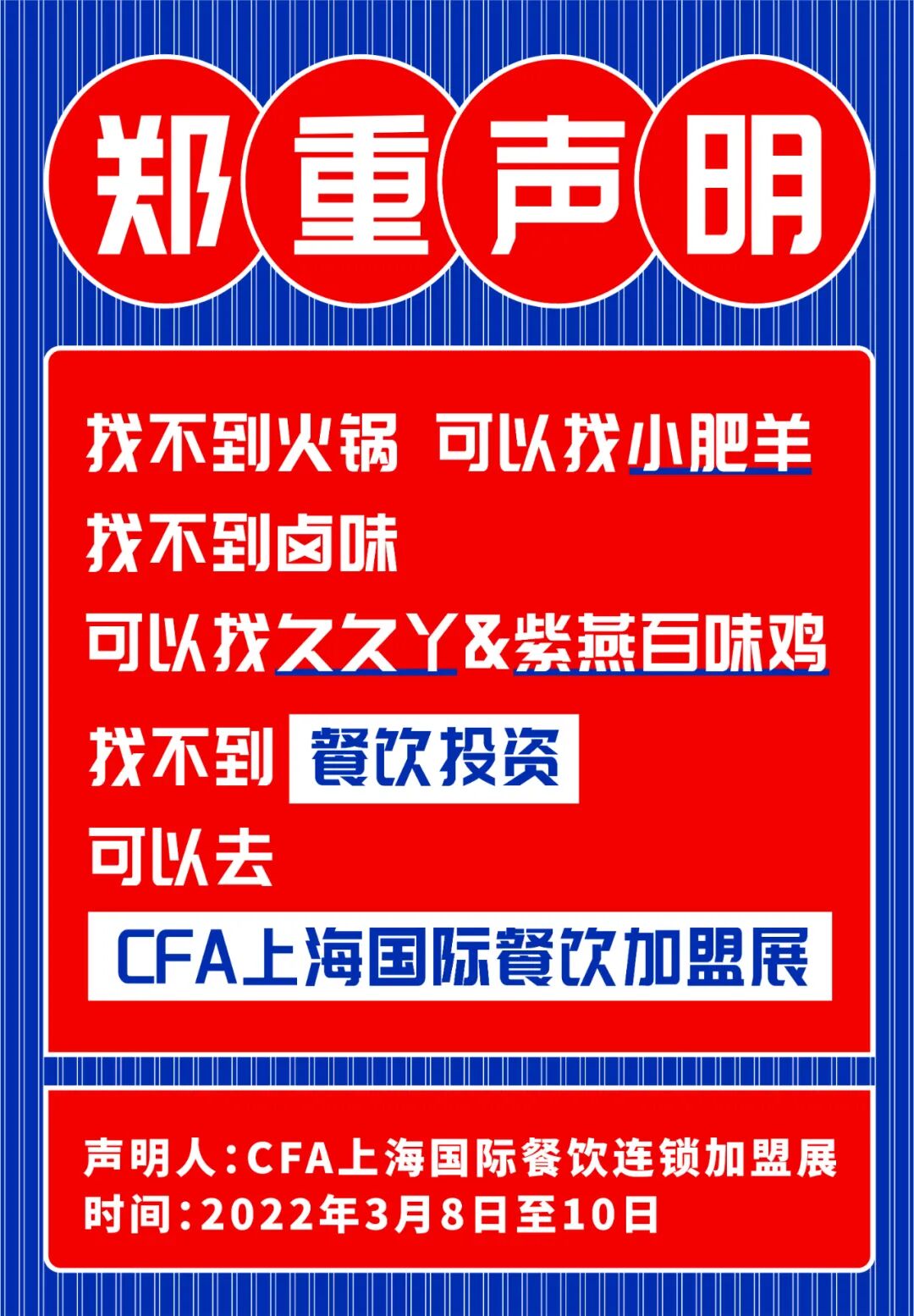 [温馨提示] 文章来源于CFA上海餐饮加盟展公众号,转载注明原文出处,此文观点与查生意无关,理性阅读,版权属于原作者若无意侵犯媒体或个人知识产权,请联系我们,本站将在第一时间删掉 ,查生意仅提供信息存储空间服务。