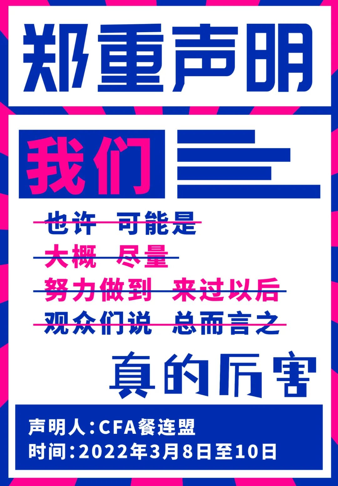 2021年还剩百分之10,CFA餐连盟每年服务数百个餐饮连锁头部品牌,为此我们做出深刻的郑重声明!也对2022年,这个全新的一年,发出声明!