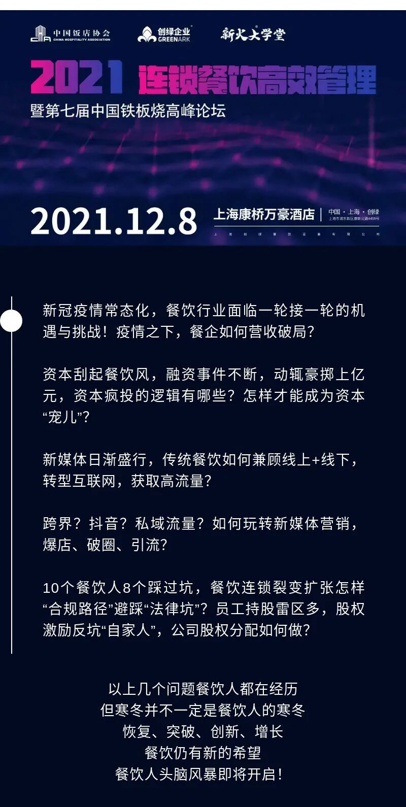 CFA协办 | CFA餐连盟 x 创绿巨轮 12月8日 聚焦第七届中国铁板烧峰会