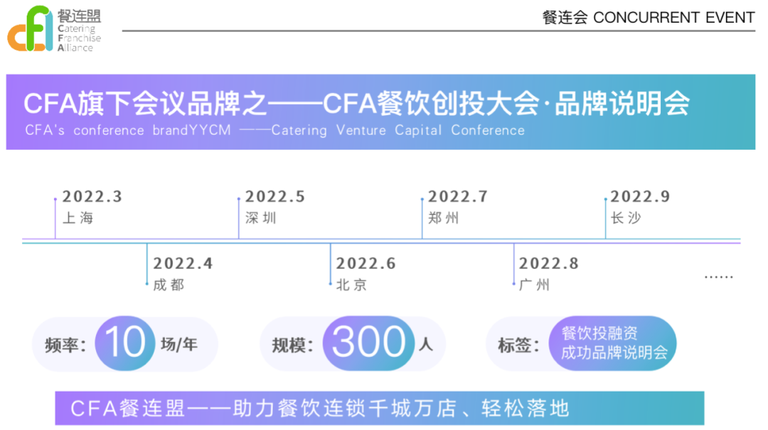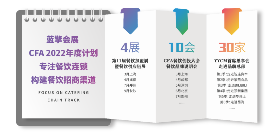 超然!CFA餐连盟2022 年度计划:4展10会30家。构建餐饮招商线下立体营销渠道!