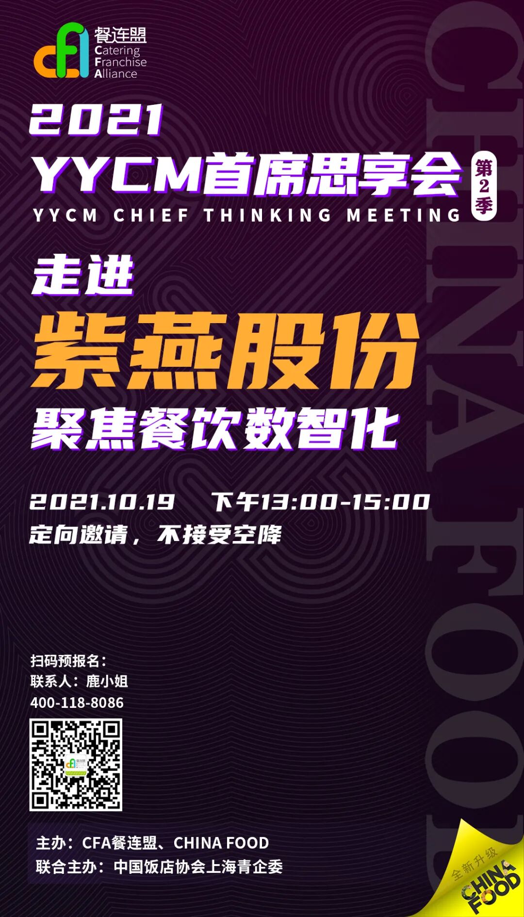 2021·CFA餐连盟数字食代,未来时代。由CFA餐连盟主办的YYCM首席思享会第2季,走进紫燕食品,聚焦餐饮数智化。了解餐饮人实