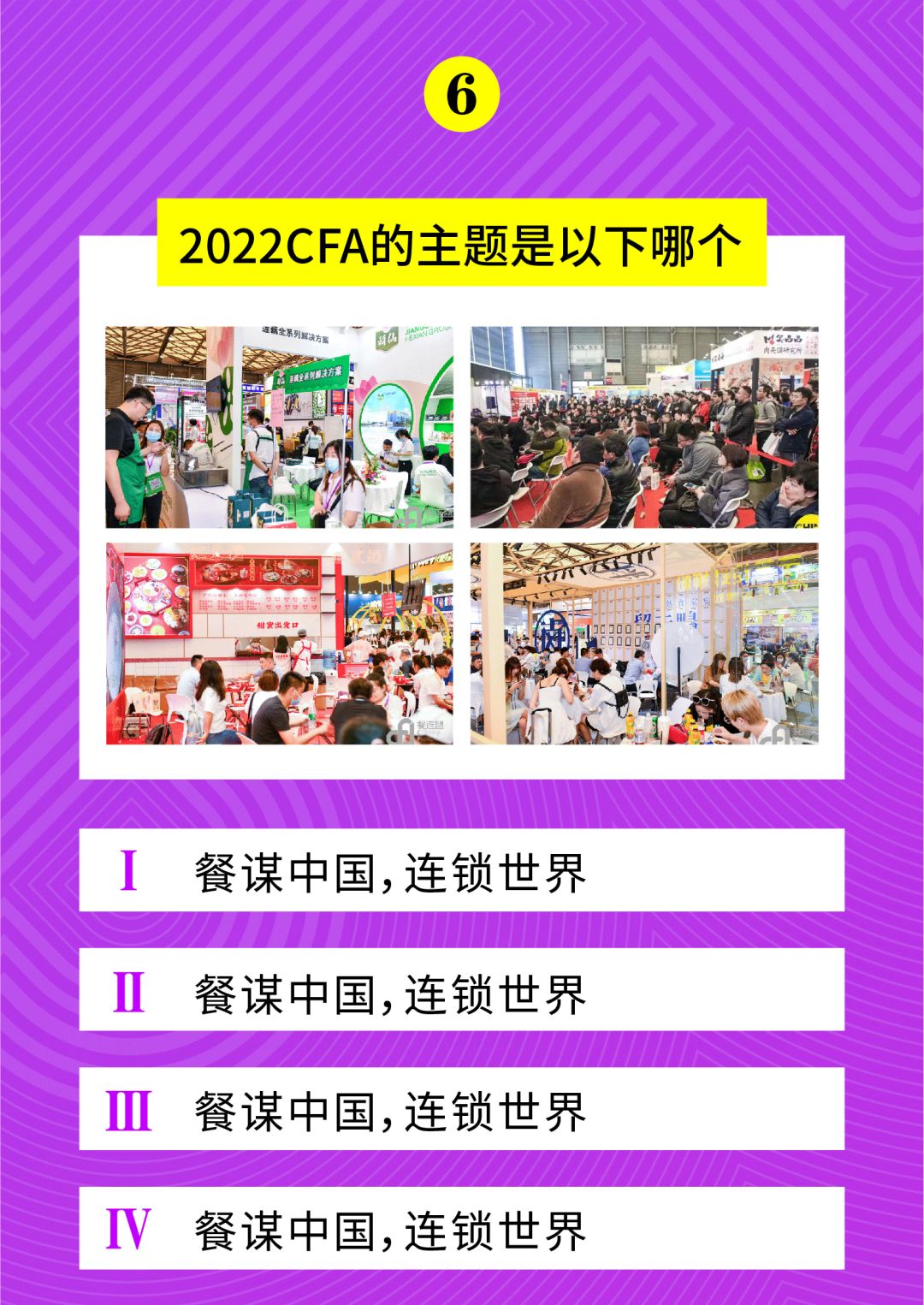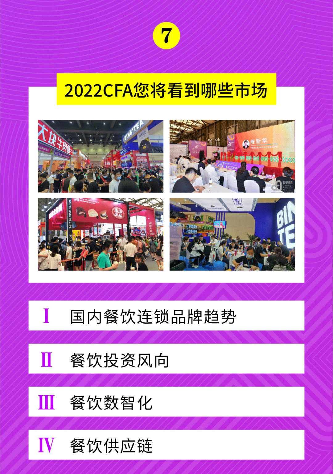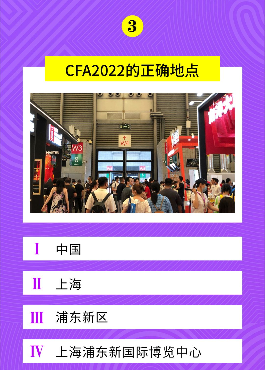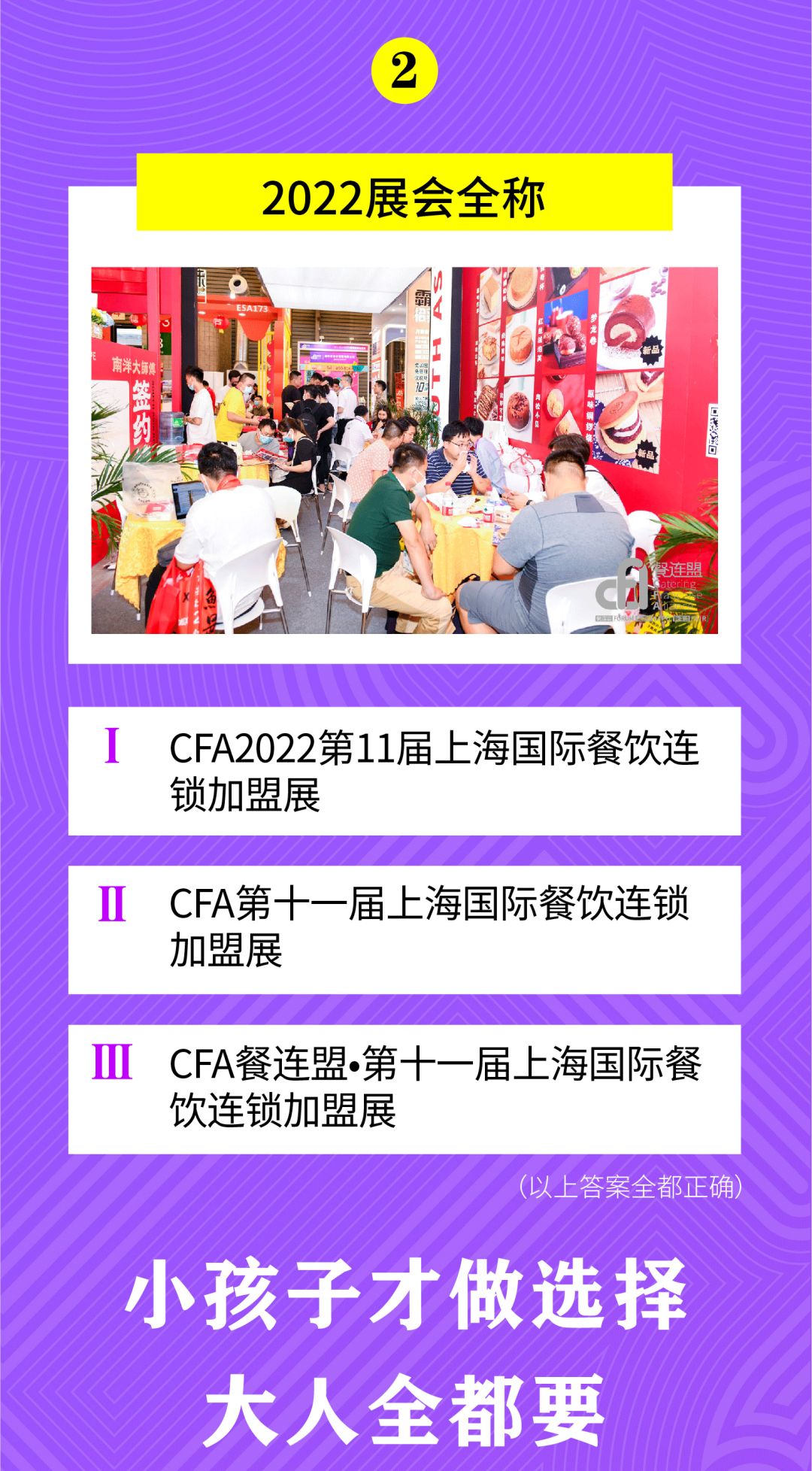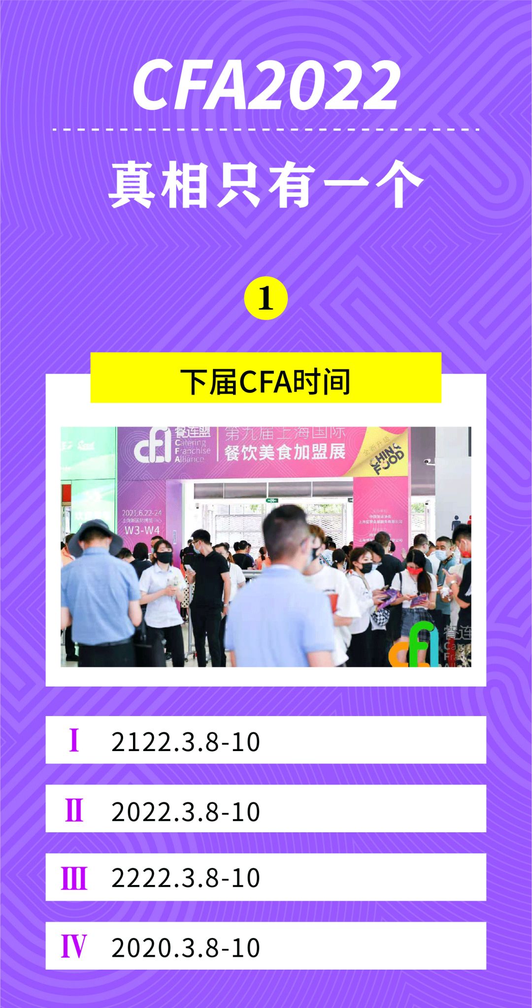 CFA餐连盟·第十一届上海国际餐饮连锁加盟展将于2022年3月8日至10日盛大开幕,对于已经拥有十一届粉丝的CFA而言,相信你们可以交出以下完美的答卷!