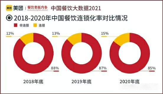 据美团发布的《中国餐饮大数据2021》显示,中国餐饮连锁门店增长率为27.4%,而中国餐饮市场实际增长率仅8%,中国餐饮连锁门店正以3倍于整体餐饮的增长率扩张。中国餐饮品牌连锁化时代,如日东升,才刚正式拉开序幕......