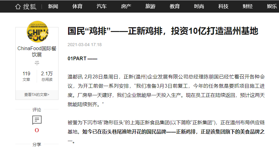 中国小吃头部品牌:正新鸡排,门店数24,000+