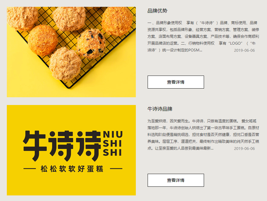 品牌简介品牌视频门店形象产品简介口感丰富,低糖健康 当日现烤,更多爆款美味等你来撩~低糖原味蛋糕浓香芝士蛋糕爆浆巧克力蛋糕肉松小贝