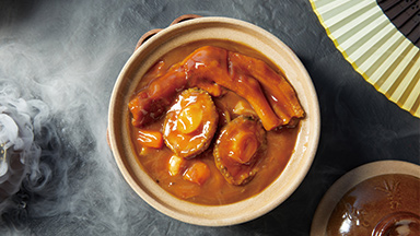 鲍鱼浓郁的肉香,爽口嚼劲,散发出清亮的光泽