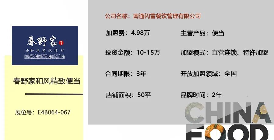 品牌简介 春野家和风精致便当,制做十分的简易,就算是沒有工作经验,还可以轻轻松松初学者,变成工作中运营的权威专家。加盟代理春野家和