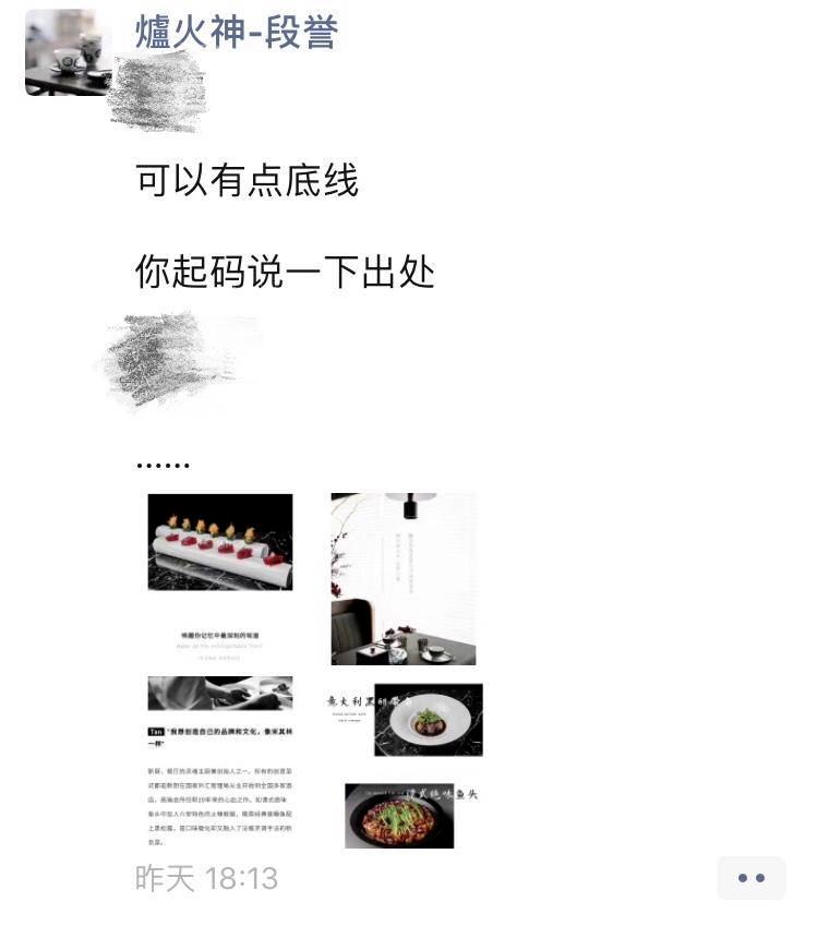 9月14日傍晚,北京新京菜餐厅拾久的主理人段誉在朋友圈爆料“被抄袭”,包括菜品、装盘、容器,甚至餐厅名、文案,更可气的是,对方还标了原创,强调了自己“创作”的初心与情怀。