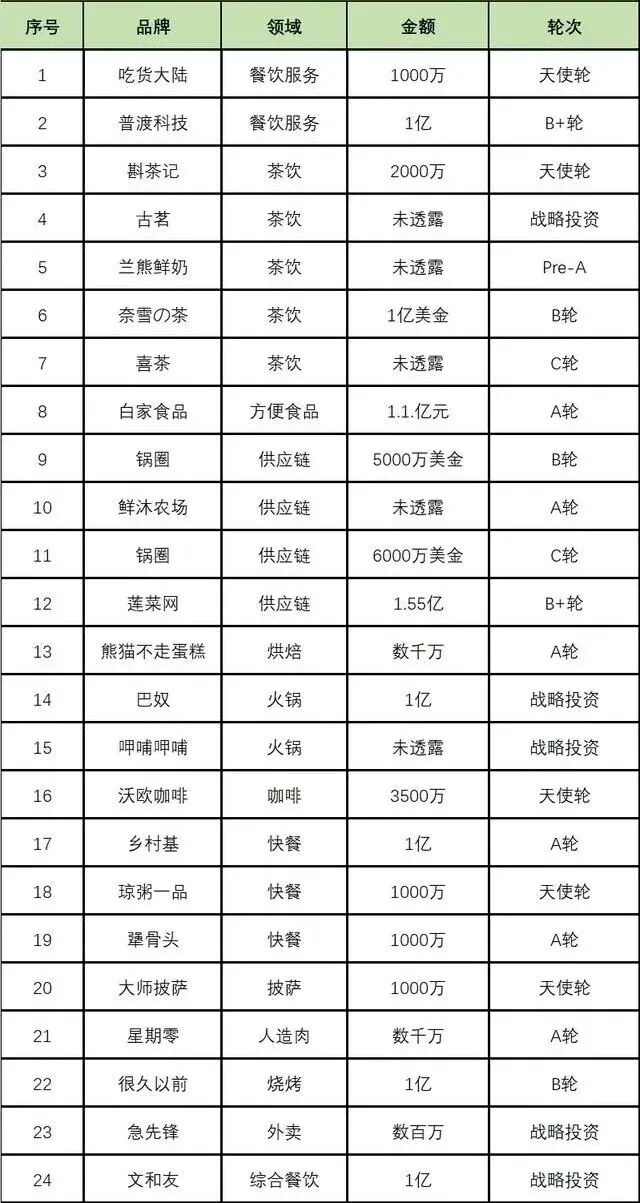 临近岁末,让我们来看看,今年有哪些餐饮品牌受到了资本的青睐!